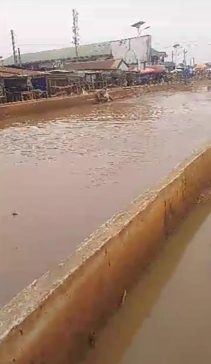 A video clip of the road shared on Wednesday after a heavy downpour in the area, showed a stretch of road submerged in water, with vehicles and road users trapped.