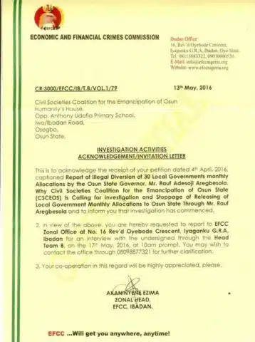 The group, therefore, disclosed that it had concluded arrangement to write a letter to the leadership of the anti-graft agency on how to begin the investigation on the aforementioned petition letters against the former Governor Rauf Aregbesola on his bad stewardship as Governor of Osun State.