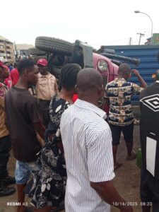 In a voiceover accompanying one of the videos from the scene, another witness described the accident as “one too many” along the Upper Iweka corridor, blaming the recurring crashes on the bad condition of the road and lack of enforcement against reckless trailer movements. He lamented that such unfortunate crash has become a recurring incident in the area, recounting how many trailers that have fallen there within a space of few months.