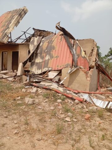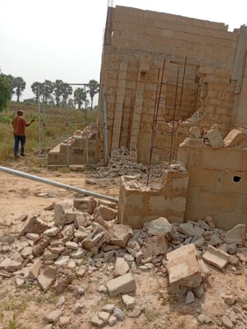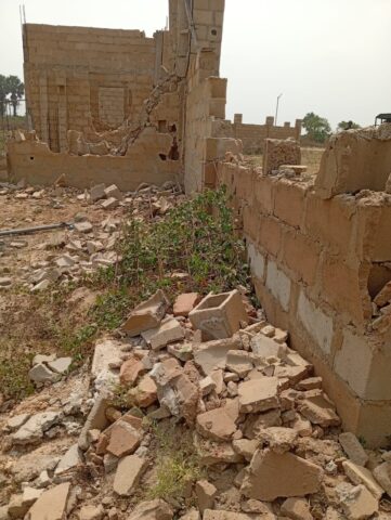 It was alleged that some people had gone to a said property in Okpuno demolished walls and ultimately set a bungalow ablaze in the land .