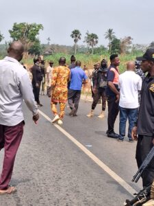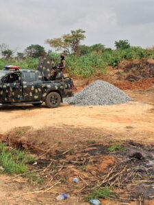 In their show of communal spirit, youths, elders and members of the town union, led by the President General, Hon. Sir Felix Godwin Oranye, stormed the site to register their displeasure and warn against further construction activities. Upon their arrival at the site, there was heavy presence of armed security there, including the military.