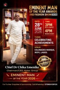 Chief Dr. Chika C. Emenike (Ojichukwu), Chairman/CEO of Kotec Group and founder of the renowned Tummy Tummy Noodles brand, has been nominated as The Eminent Man of the Year 2026 in recognition of his extraordinary journey from humble beginnings to industrial prominence.