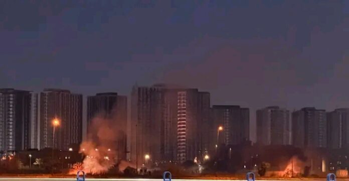 Iraqi security sources confirmed that the diplomatic compound was targeted by a combination of at least five drones and multiple rockets. While the embassy’s automated defense systems successfully intercepted two of the drones, a third reportedly struck a helipad or outer wall within the compound, sparking a visible fire that illuminated the night sky.
