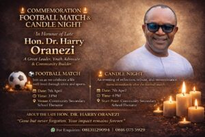 The quiet community of Ebenator in Nnewi South Local Government Area of Anambra State came alive with emotion, remembrance and deep reflection on Tuesday, April 7, as activities marking the burial of former member of the House of Representatives, Dr. Harry Nnabueze Oranezi, commenced with a youth-organised memorial football match and candlelight procession.